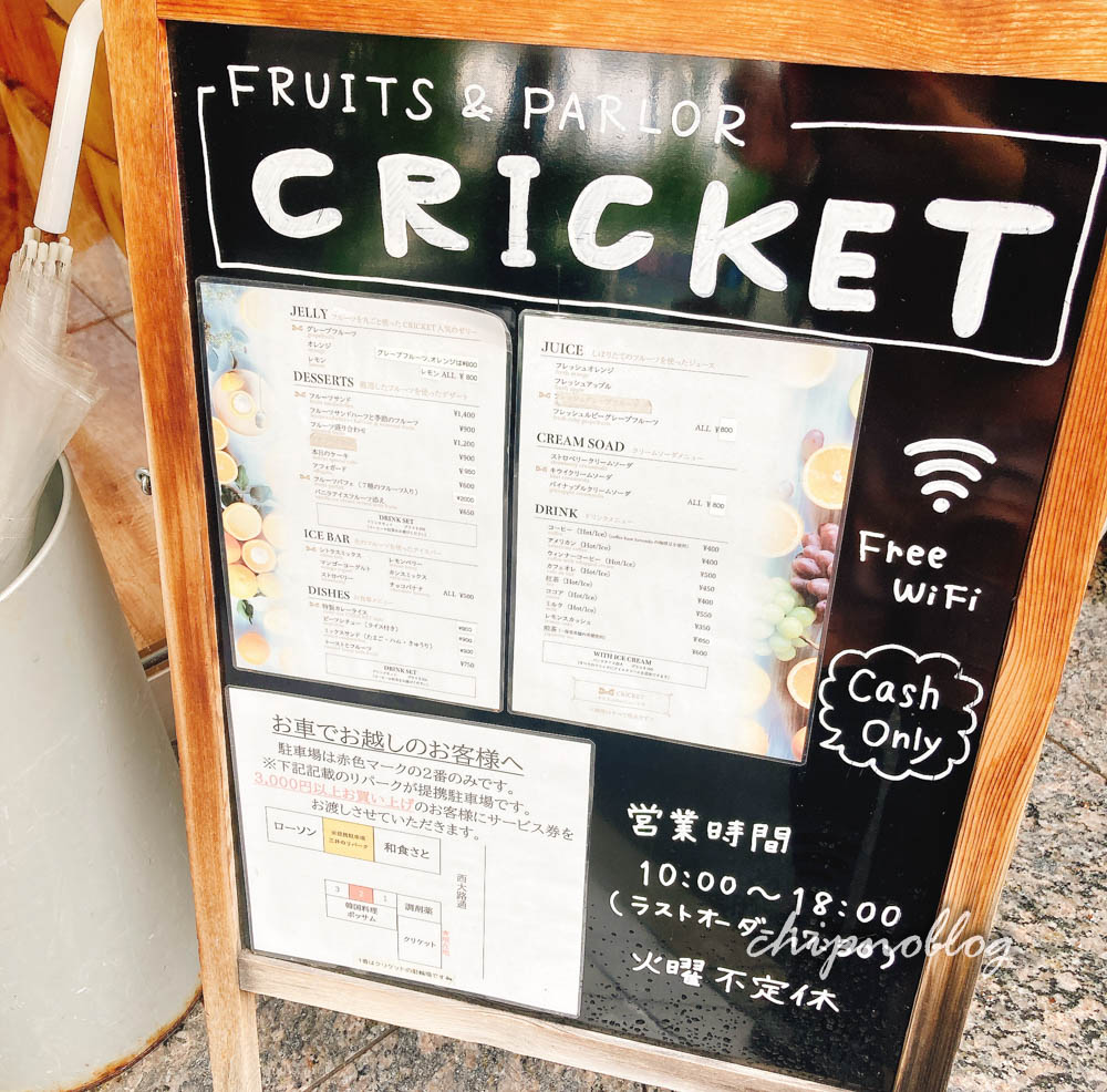 フルーツパーラークリケットさんの店頭に謎がありました。