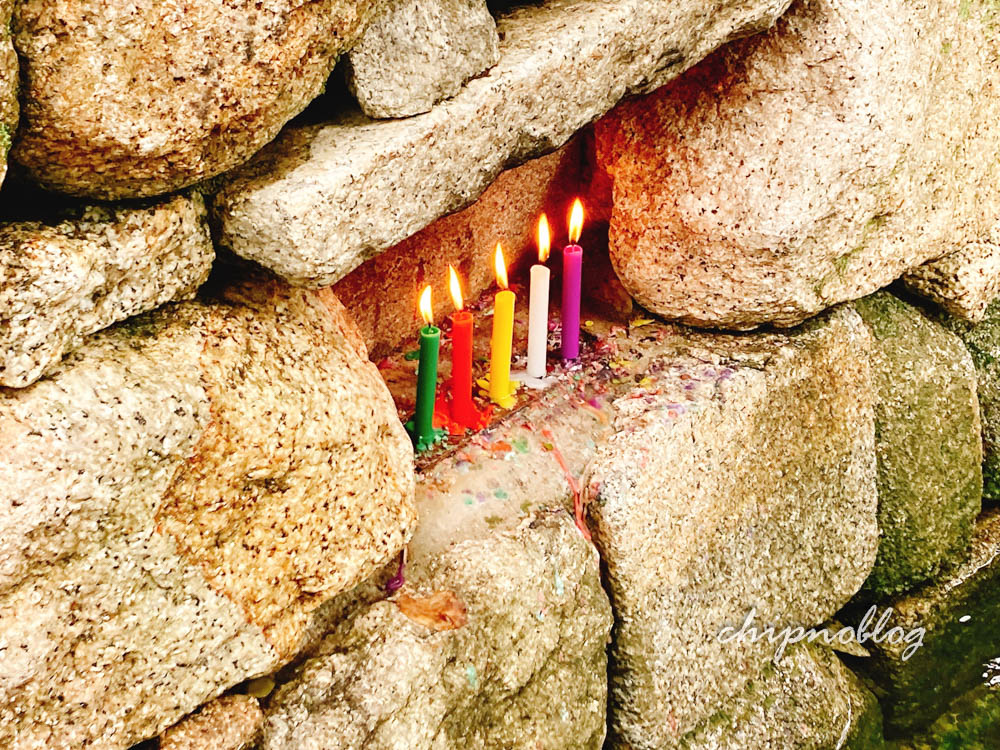 というわけで、ろうそくも奉納して川から上がって靴をまた履くのでした。