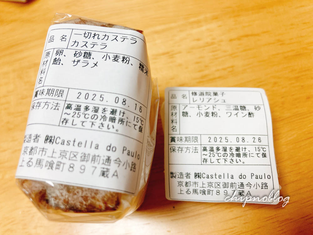北野天満宮近くにあるポルトガルのお店でカステラとレリアシュというお菓子も買ってました。