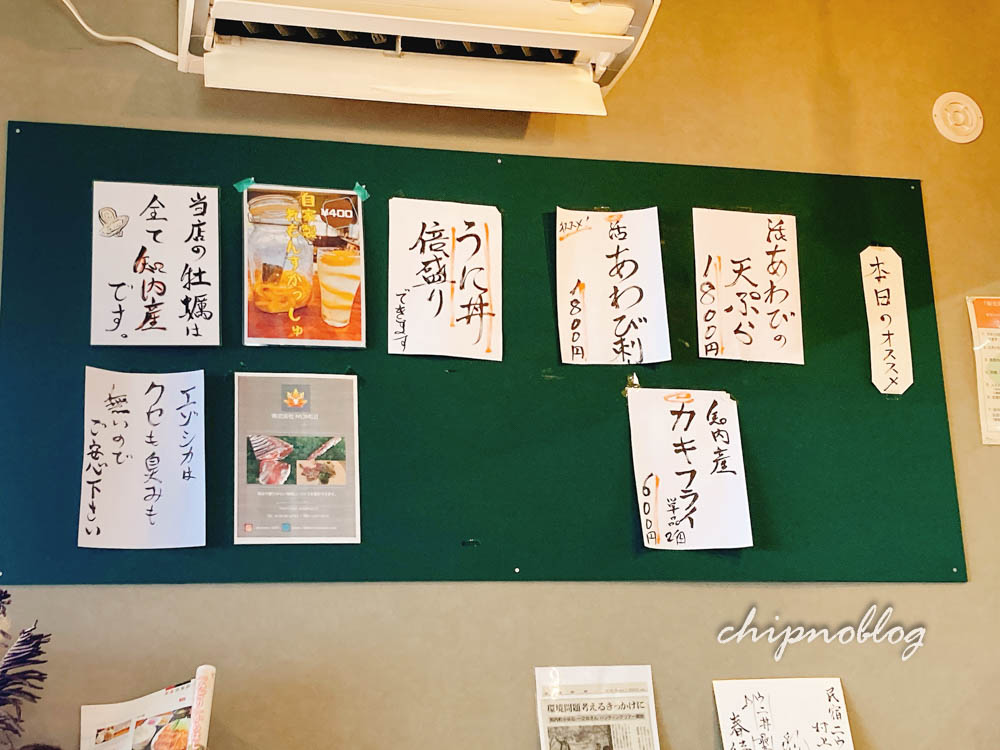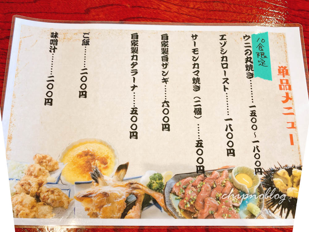 メニュー。ウニ目当てだけど、サーモンとかざんぎもおいしそう。