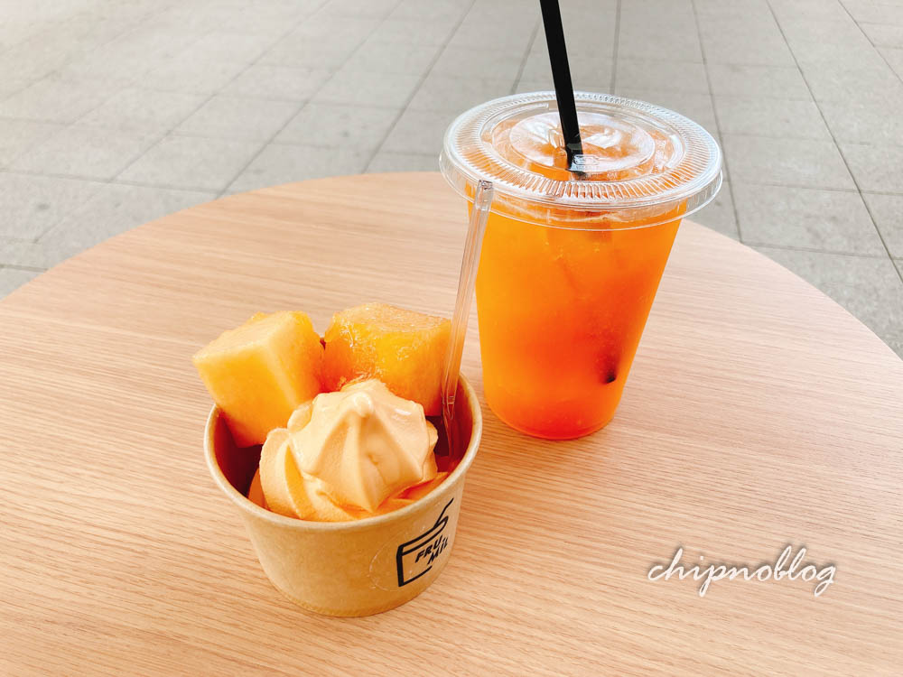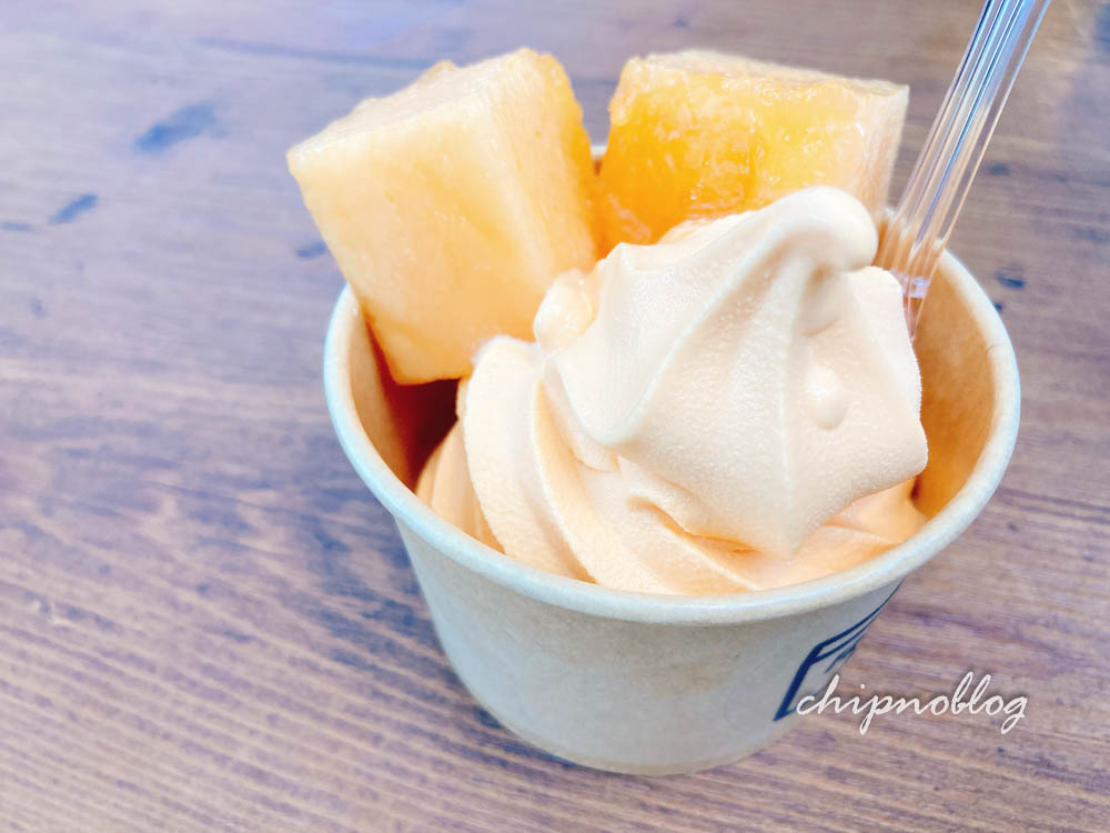 私はメロンソフトとメロンを食べて、少しもらったメロンジュースもすごくおいしかった。