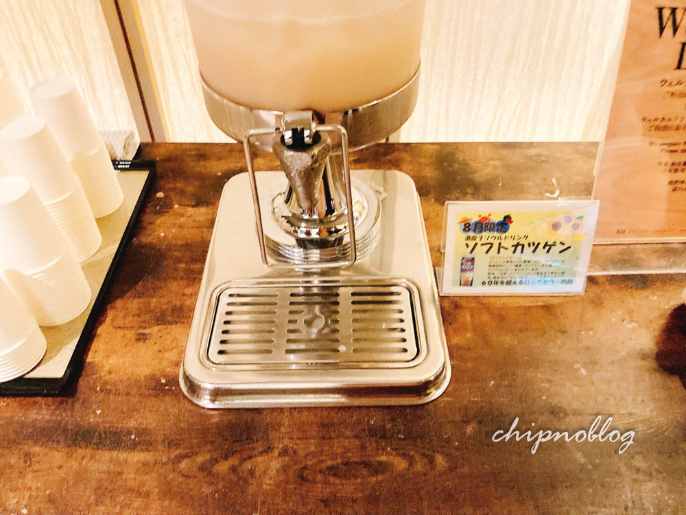 ソフトカツゲン(乳酸菌飲料)のほか、ウェルカムコーヒーやハスカップ、コーン茶?など。