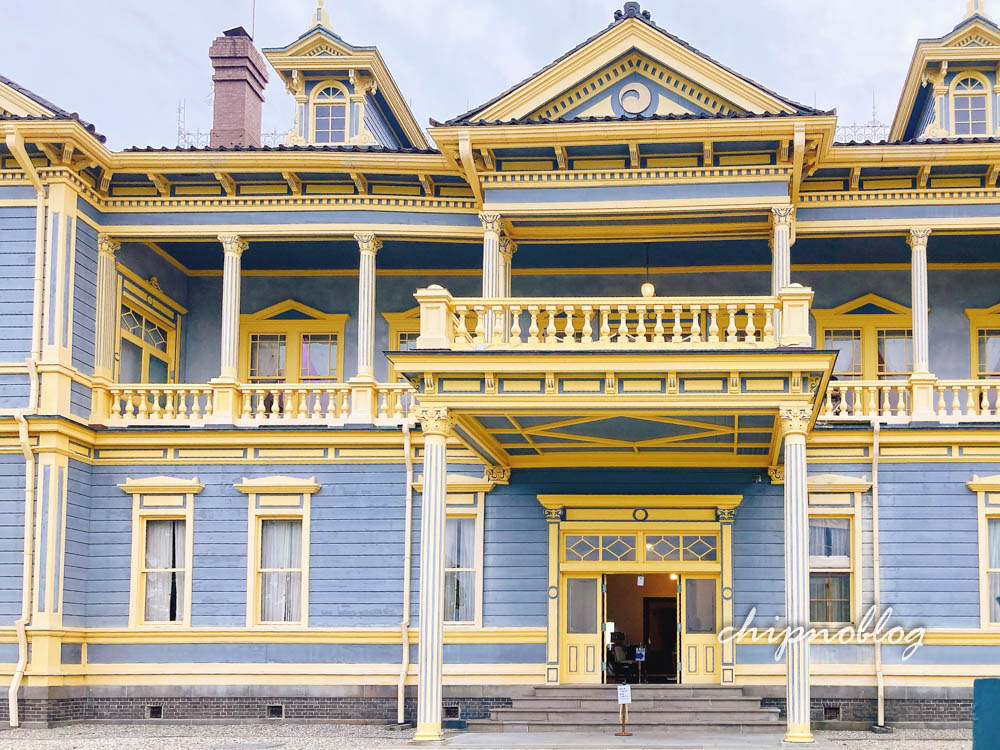 グレーと黄色が特徴的な、旧函館区公会堂。