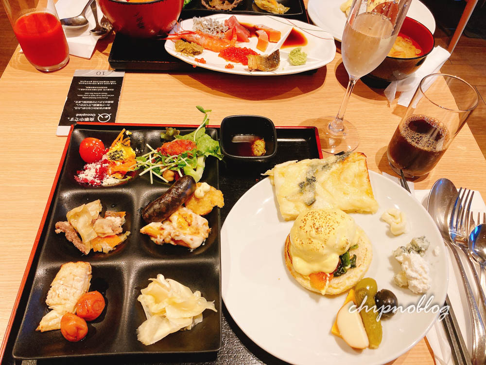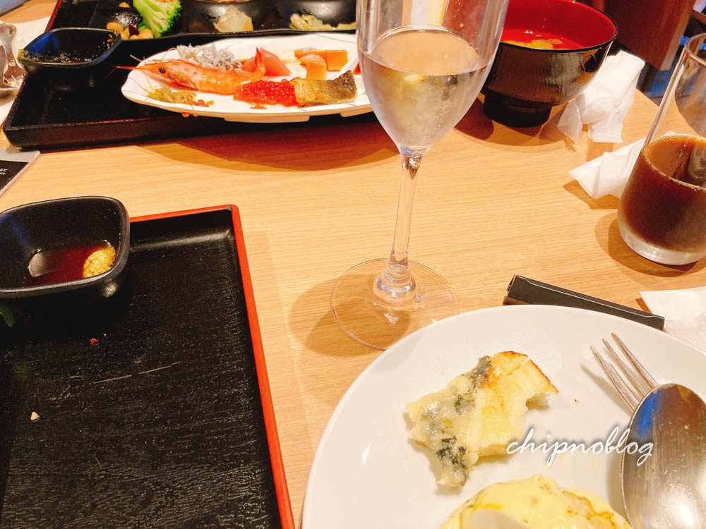 1回目。朝からスパークリングいただきます。チーズも各種あった。