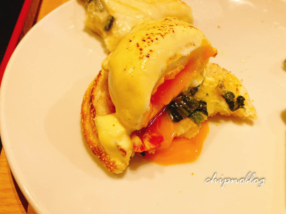 エッグベネディクト、黄身が流れ出てきておいしかった。