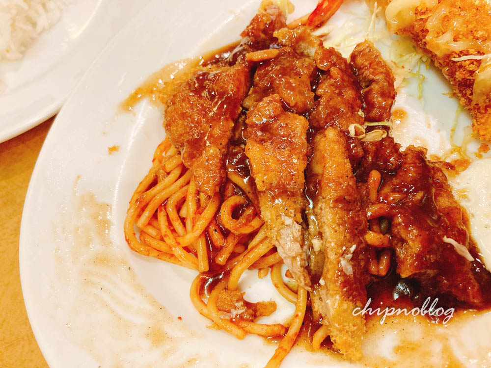 ビフカツもたっぷりあるし、卵の下にはスパゲティ。お野菜もたくさんついてました。