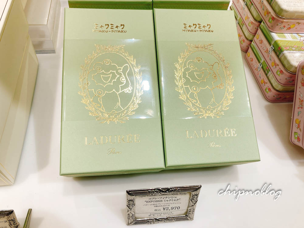 ルクア待ち合わせで、ラデュレをのぞいたらミャクミャクのマカロンがありました。