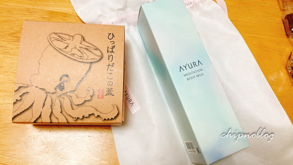 人づてにもらったボディクリーム。そして京都駅で、普通のひっぱりだこ飯のフタを買いました。お漬物とか入れられそう。