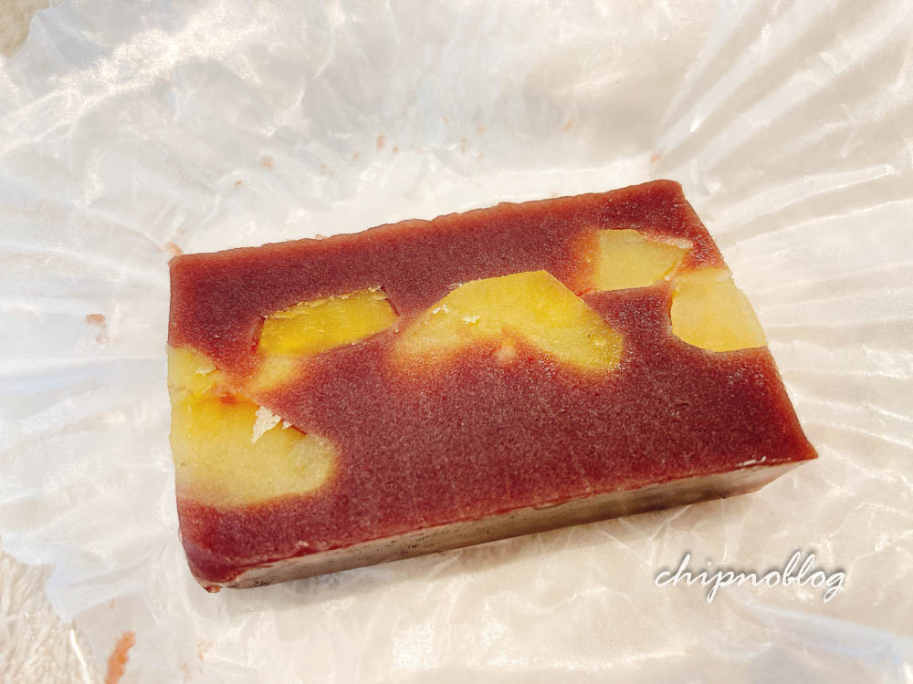 やっぱりポムの羊羹はなくて、かわりにみんなで食べようと栗蒸し羊羹を買いました。