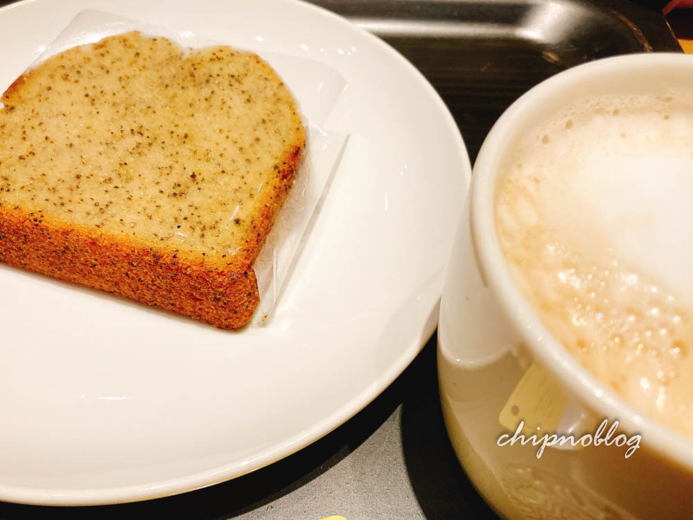 普段食べすぎなのでフードを我慢することも多いけど、この日はいいかなとアールグレイのケーキをつけました。コーヒーは大抵いつもカフェミスト。