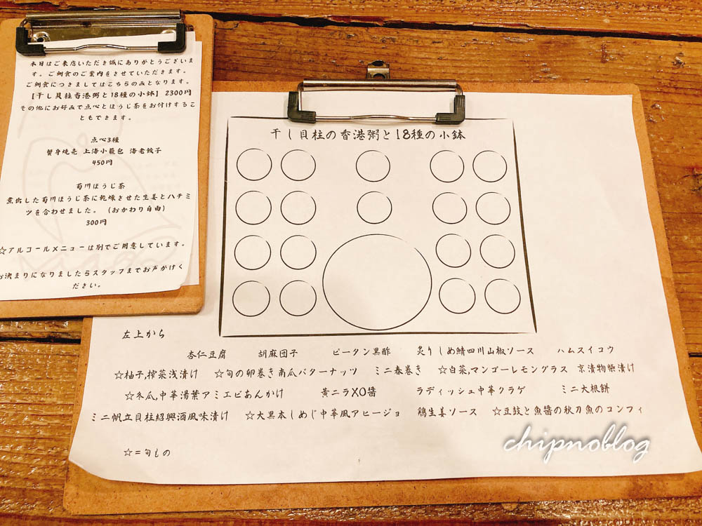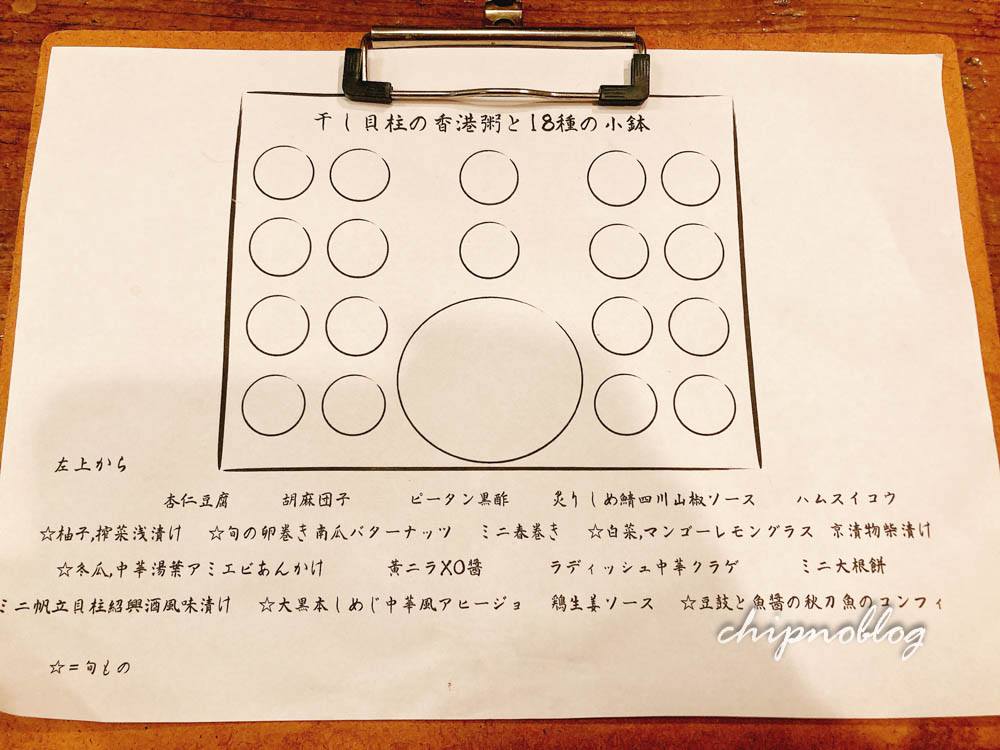 香港粥と、小鉢が18。それに食いしん坊姉妹なので、点心もつけました。