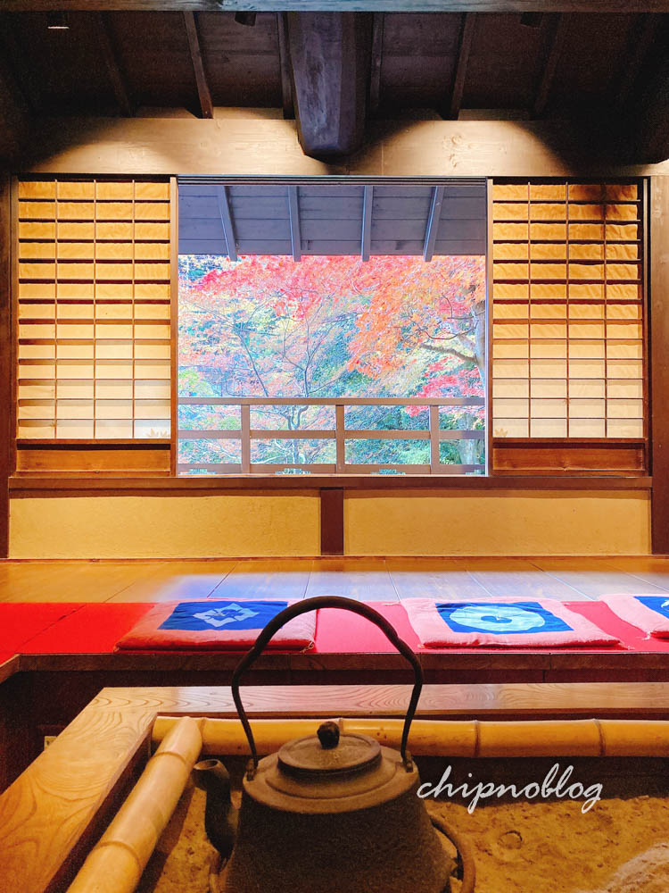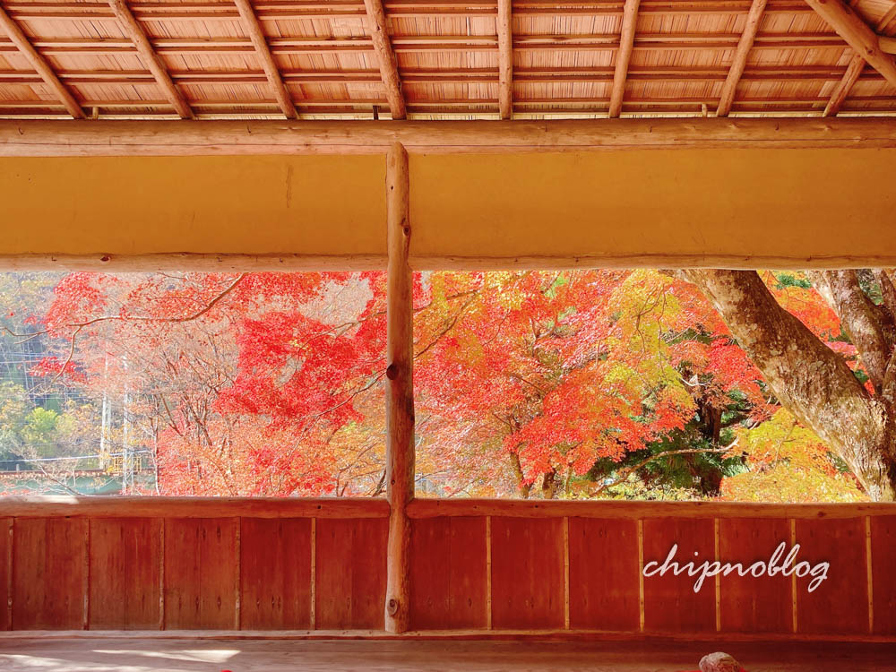パンフレットには床紅葉がきれいに写っているけど、実際には紅葉がまだそこまでだったのか、夕方に訪問したから光の都合なのか、こんなにしっかりは写りこんでなかったのです。
