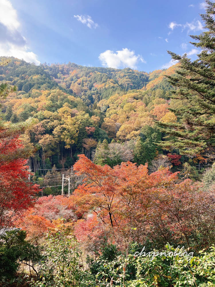 降りると青空と緑に、紅葉が映えてとてもきれいです。