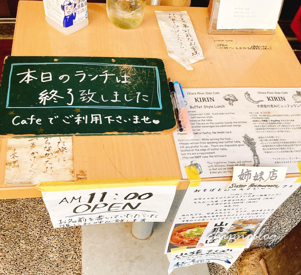 さてぜんざいにお餅2個あったし、結構満腹感はあるけど、前に食べた大原のキリンでまたランチ食べたいねとなって、ブーンと車を走らせて行きました。