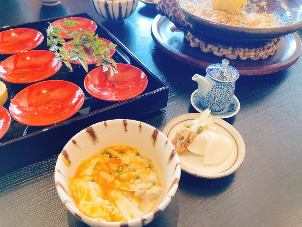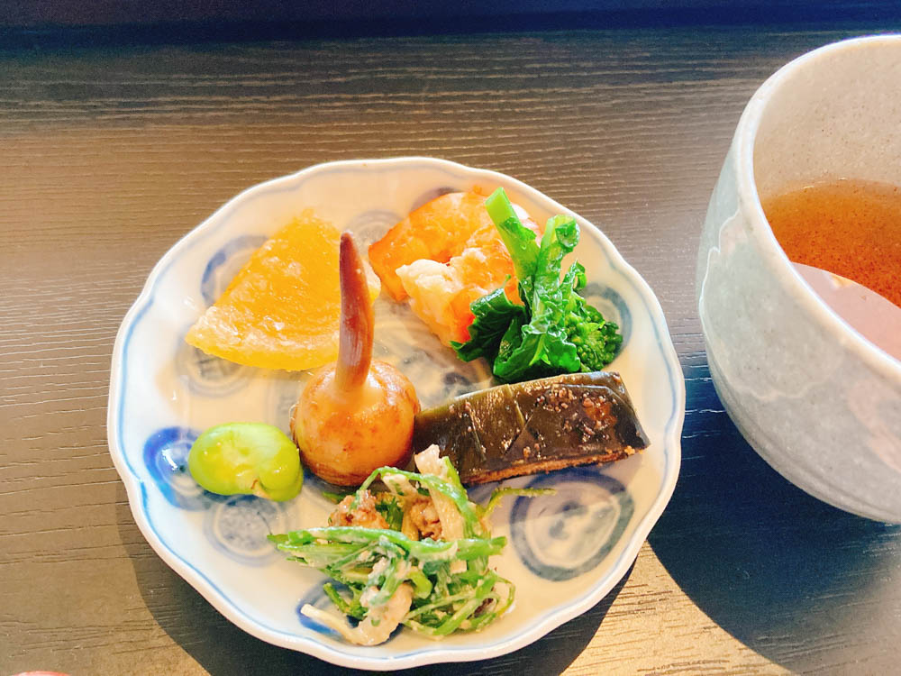 今回いただいたのは、柚子雑炊膳でおばんざい膳、季節の物、柚子雑炊、甘味で5500円でした。