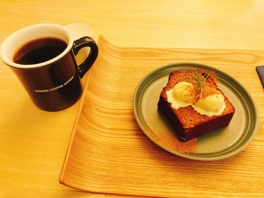 注文したのはコーヒーと、バナナと塩キャラメルのブレッドにしました。