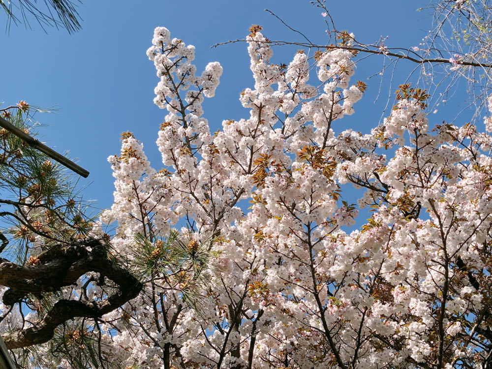 観音桜と歓喜桜が咲いていて、とてもきれいでした。椿も咲いていたし、お花がいっぱいで心地よかった。