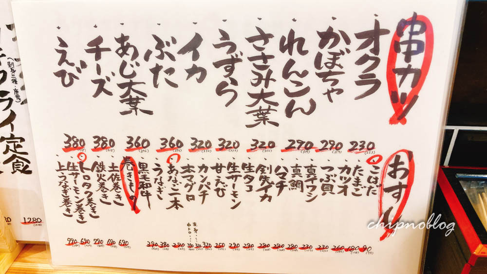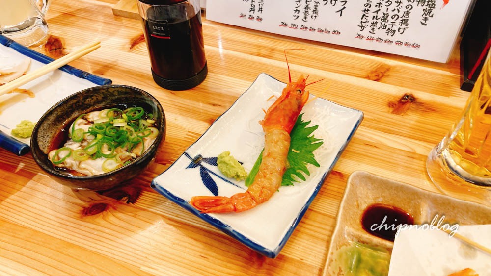 ここは好きなものを勝手に頼むスタイルで。上の貝は私は食べないけど、海老串を食べる。380円。