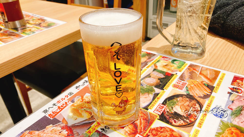 へそLOVEって書いてあるジョッキでビールを飲みます。